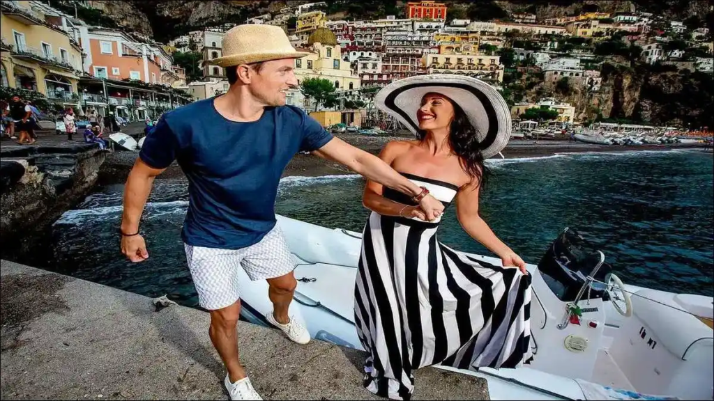 Emily Compagno and Peter Riley exchanged vows on September 13, 2017. They selected Villa Cimbrone, a historic site in Ravello, Italy, for the occasion. The event remained private, with guests limited to immediate family members and close friends. The couple decided for this destination to ensure intimacy and escape public attention. The ceremony featured elegant yet simple elements, in keeping with their desires for privacy.