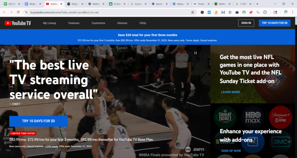 Fans searching for “methstreams NBA” can watch official NBA games safely through NBA League Pass. Prices in the U.S. vary from $14.99/month for the basic plan to $22.99/month for the premium option. These subscriptions support multiple devices and HD streams without legal risk.